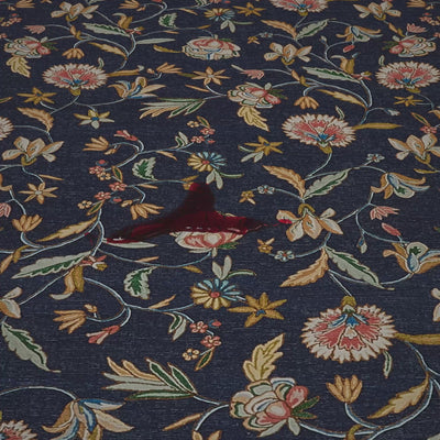 Intricate flowers found in antique embroidered fabrics are transformed into a striking rug design.