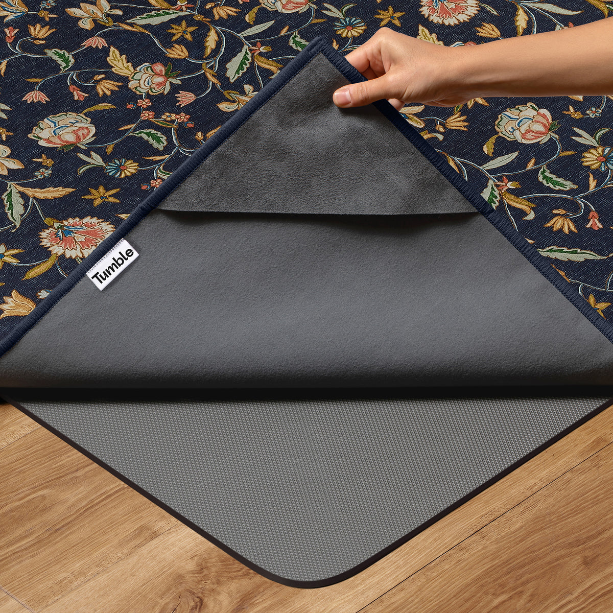 Tumble rugs stand out from other washable rugs in a few key ways. First, our rugs are equipped with a non-toxic, spillproof coating, so liquids magically bead up on the surface for easy cleanup. They're also built for convenience, with all sizes fitting into a standard washer and dryer, so you can skip the laundromat. Plus, our patented design makes assembly a breeze: just tuck the cushioned rug pad (included with every purchase) into the rug’s corner pockets. No finicky Velcro —just corners that stay flush to the floor.